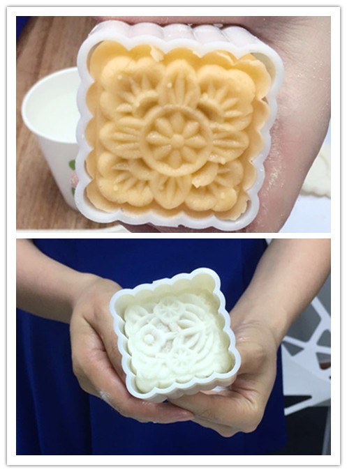 冰皮和馅料都已备好,经过模具定型,哒哒哒.....月饼要“出炉”咯